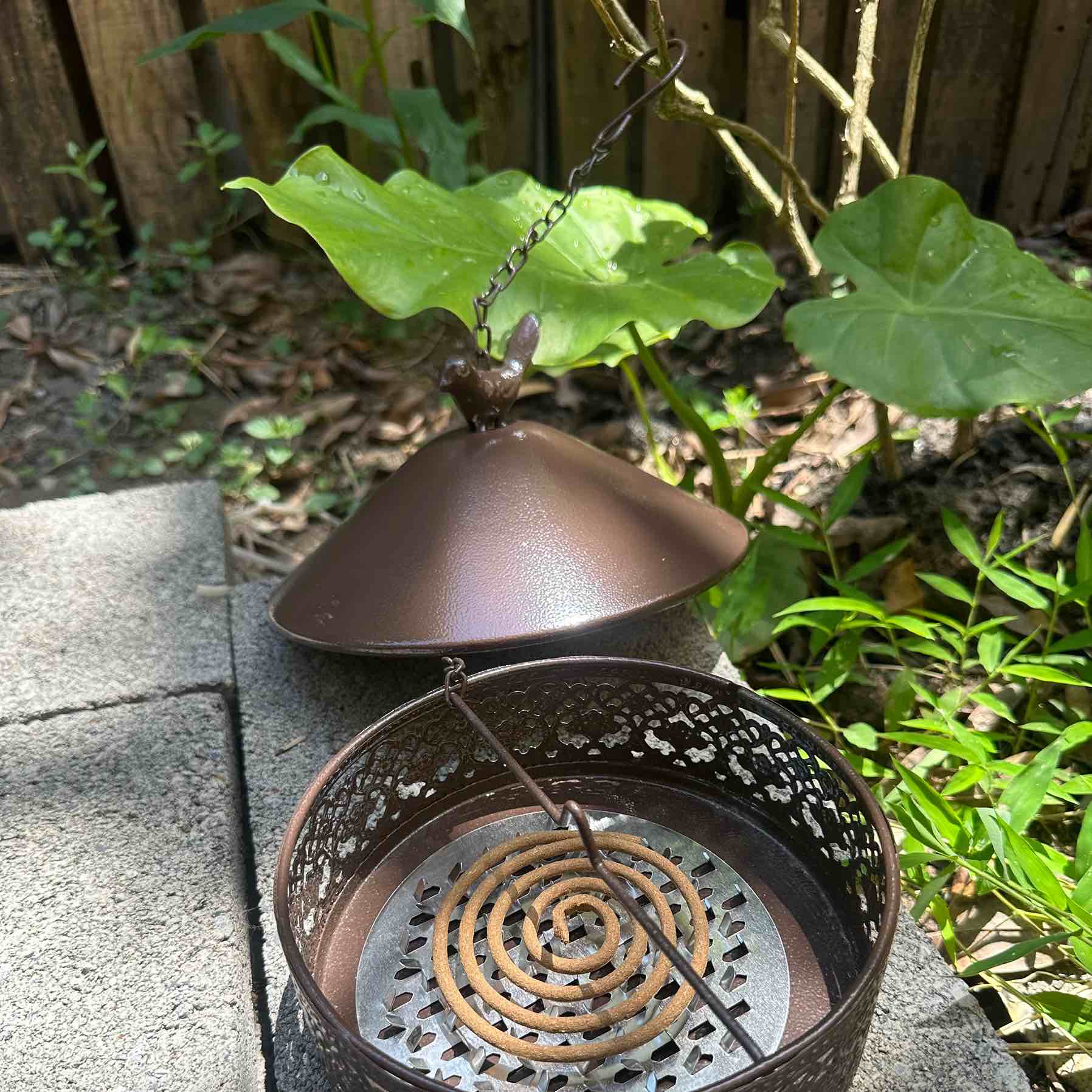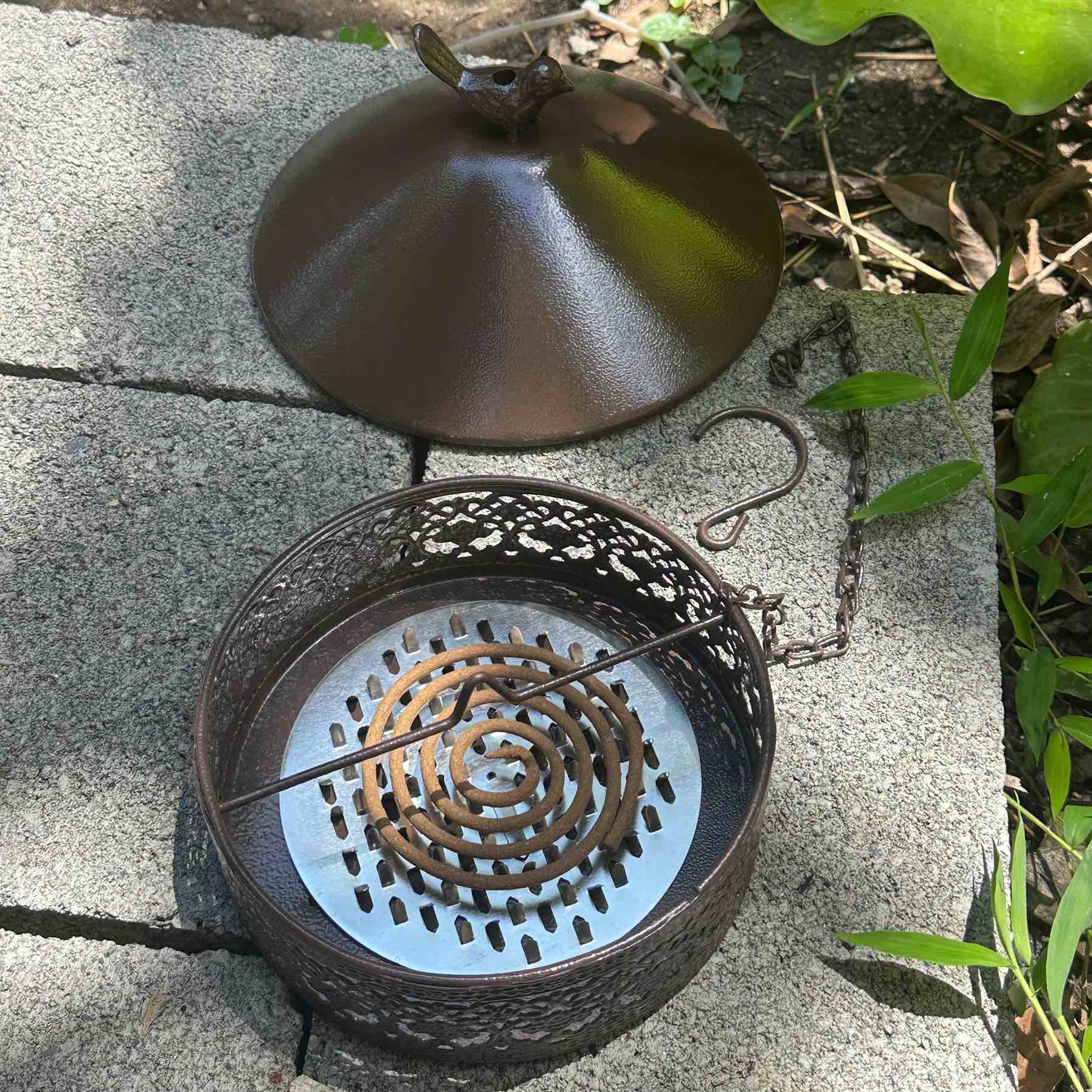 採用略為厚實的設計,適於戶外環境。只需將蚊香或驅蚊香放置在內部鋸齒形支架上。點燃後,蓋上鳥巢蓋款式的上蓋,並使用附帶的掛鉤,將香爐懸掛於樹枝,或任何其他合適的位置,煙霧在枝頭間優雅飄蕩,為夏日增添一絲優雅與寧靜。