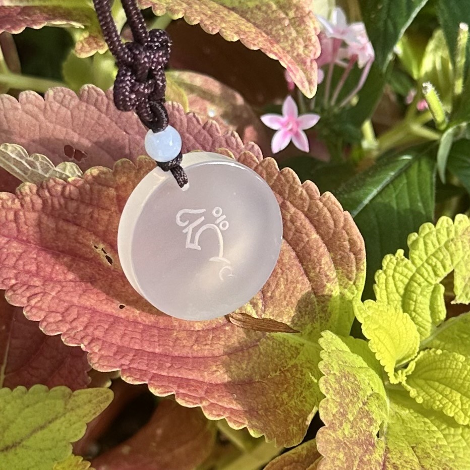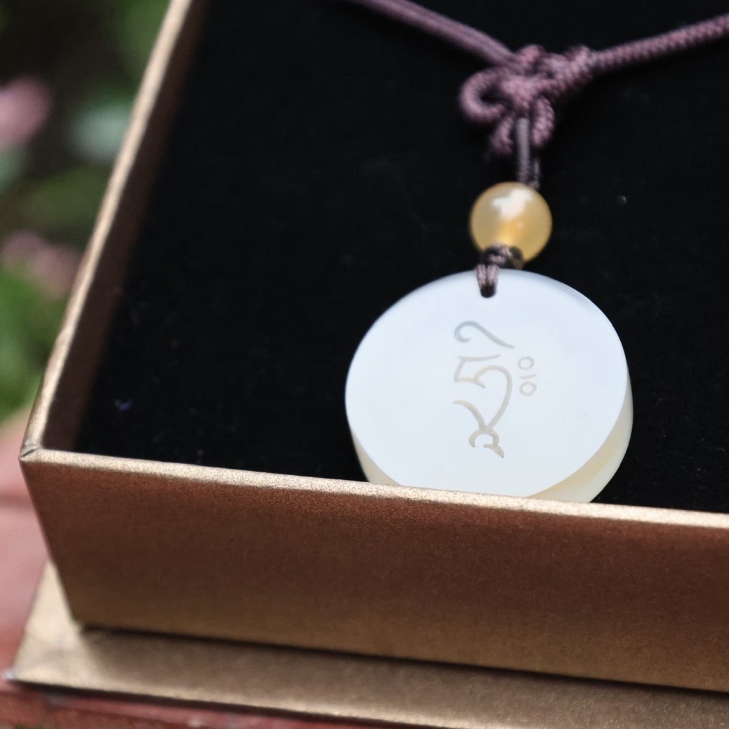 【明照祇園 觀音種子字 ཧྲཱིཿ hrīh 白玉髓玉珮 Avalokiteshvara Seed Syllable Chalcedony】Guanyin/Chenrezig 慈悲與智慧的修持The Practice of Loving Compassion and Wisdom
